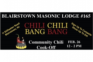 Do you have a great chili reciepe or do you like to eat chili? Blairstown Masonic Lodge is hosting their Chili Chili Bang Bang cook-off. Sign up to enter your best reciepe or come out to test taste.