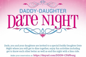 Dads, do you want a fun night with your daughter(s)? Come to Chick-fil-A for a special Daddy Daughter Date Night where you will get to dine together, enjoy fun activities including get to know each other better as well as end the night with a limo ride around the mall in a stretch limo. Enjoy an evening out with your little girl and the Chick-fil-A COW.This event is a by reservation only. All Reservations are for a 45 minute seating and then the limo ride. Reserve your spot now. Activities are free, just pay for your dinner at normal prices.