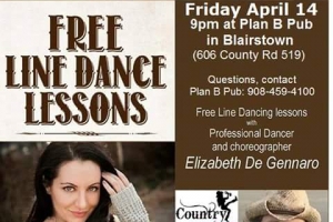 Friday, April 14, 2017 - 9:00pm Free line dancing lessons offered by professional dancer and choreographer Elizabeth De Gennaro. Call 908-459-4100 for details. Website