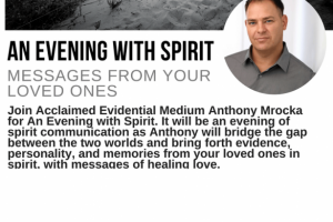 Join Acclaimed Evidential Medium Anthony Mrocka for an evening of spirit communication as Anthony will bridge the gap between the two worlds and bring forth evidence, personality, and memories from your loved ones in spirit, with messages of healing and love. Cost is $40 and you can sign up here.