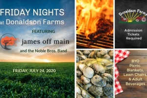 Friday Nights at Donaldson Farms featuring James Off Main continue! This week's musical guest is The Noble Bros. Band, a local favorite and Hackettstown hometown boys. Relax and enjoy delicious food and live music outdoors while surrounded by the stunning views of growing crop fields and mountain vistas. Bring your own adult beverages if you wish. Tickets are required to enter the event whether or not you plan to purchase food; all food is sold separately.