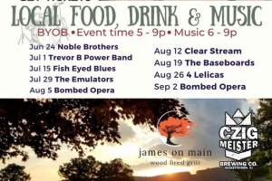 Relax and enjoy outdoor dining and live music while surrounded by the stunning views of your local farm! James on Main collaborates with Donaldson Farms to create delicious farm-fresh and locally sourced cuisine for our guests. We're proud to host our friends from Czig Meister Brewing Company.