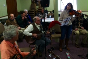 It's a live, acoustic music jam, and EVERYBODY plays along. Newbies welcome!