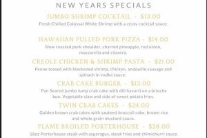 Menu specials offered all weekend - reservations recommended - and there will be a "Power Hour" at the Draught House Igloo Bar on New Year's Eve.