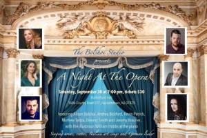 Featuring Alison Bolshoi, Andrea Bickford, Kevin Patrick, Mathew Tartza, Devony Smith and Jeremy Brauner singing arias, scenes, Italian art songs and German lieder, with the illustrious William Hobbs at the piano.