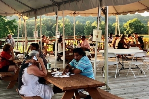 Although the deck isn't covered as of yet, the tables are available on these beautiful spring days.