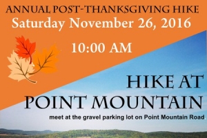Set aside the Saturday after Thanksgiving (10am-12pm) to burn off those extra calories for our annual hike at the Point Mountain Reserve trail. Hikers will use the Ridge Trail, which cuts through the forests and a mountain stream. A scenic overlook along this trail provides a view of distant mountains and farmland in Warren County. The trail is diverse and challenging at times, and includes a steep and rocky incline. Bring a snack, water and binoculars. All are welcome, novice and expert alike. The meeting place for this hike is 9:45 am at the gravel parking lot on Point Mountain Road approximately 0.3 miles from Route 57.