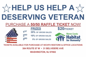 Proceeds from this raffle will go toward a house being built for a Veteran family in Pohatcong Township. The drawing will be held at Habitat's Washington office on Veteran's Day, November 11. Purchase tickets online, or visit the WCHFH Restore or office (both in Washington).