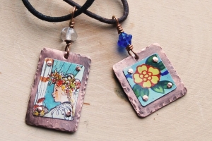 Join a beginner level class and learn some basic metal work and cold connection techniques. Participants will cut, sand and finish their selected tin pieces then rivet them onto their copper piece. All participants will leave with a finished necklace they can wear home! Suitable for teens to adults! The cost of the workshop is $30 which includes all materials and use of tools. Signs ups are in the Gallery and are first come first serve. Payments can be made in advance or paid the day of with cash or check made out the Brooke VanDerzee. Don't miss this fun event!