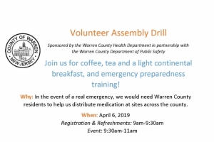 The Warren County Health Department, in partnership with the Warren County Department of Public Safety, is hosting a volunteer assembly drill to test a component of the Public Health Emergency Response Plan. County agencies will be participating in an exercise to determine the capability of our public health workforce and residents to staff three point of distribution (POD) sites. At the POD site, volunteers will receive Just in Time Training (JITT), which will teach volunteers all they need to know about working at a POD site in a real life emergency. There will be coffee, tea and a light continental breakfast. Join us at the following locations: