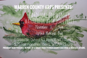 The November activity for WC Arts will be a watercolor class with Jean Perry. $25 for nonmembers.