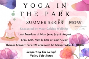 Classes are held under the Pavillion (or out in the grass) at Thomas Stewart Park: 112 Greenwich St, Stewartsville, NJ. Bring a mat and blanket or extras will be provided.