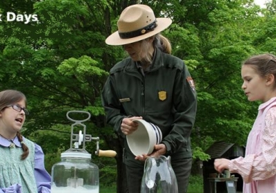 Millbrook Village in the Delaware Water Gap National Recreation Area comes alive with the sights, sounds and smells of country life in an earlier time, as volunteers and park staff demonstrate 19th century trades, crafts, and home and garden chores for the annual Millbrook Days folklife festival. The event also features old-time children’s games and live, traditional music.