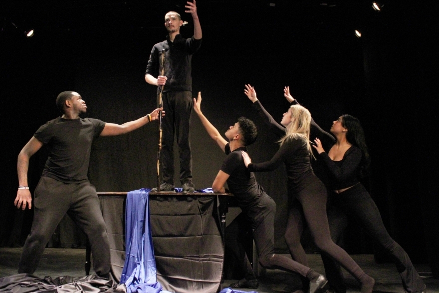 The cast includes Cody Jackson as Prospero, Aurelia Shanga as Miranda, Luis Rodriguez, Erin Clark and Raelyn Menon as Ariel, Osaivbie Igiebor as Caliban, Malakii Layton as Ferdinand, Jacoby Stewart as Antonio, Kai Vialva as Alonso, Daniel Paternina as Sebastian, Kylie Smith as Gonzalo, Christopher Rice as Trinculo, Mark Squindo as Stefano, and Matthew Steen as Boatswain/Francisco.