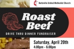 Roast Beef boxed dinner, including dessert. $19 per meal. NEW: You may stay in your vehicle and use the drive-through lane OR park in the main parking lot and enjoy your boxed meal inside in Fellowship Hall.