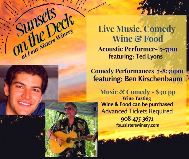 This week's Sunset on the Deck features a live acoustic performance followed by a comedy show! Tickets are required ($30 includes entertainment only; food, wine & beverages will be available for purchase). Please call 908 475-3671 in advance to secure your reservation with payment.