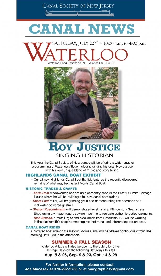 The Canal Society of New Jersey offers a wide range of programming at Waterloo Village this year including the new Highlands Canal Boat Exhibit featuring the recently discovered remains of what may be the last Morris Canal Boat. Some of the historic buildings will be open, historic trades & crafts will be demonstrated, and there will be canal boat rides.
