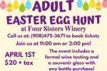 Hunting Easter eggs isn't just for kids! Join Four Sisters for an Easter egg hunt, wine and more!
