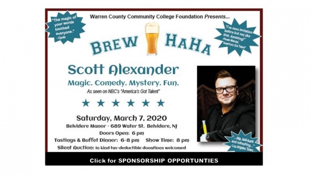 A night of magic, comedy, mystery and fun with Scott Alexander, presented by the Warren County Community College Foundation. Doors open 6pm, tastings and buffet dinner 6-8pm, show time is 8pm. Silent Auction, too!