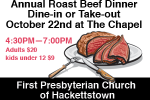 Take-out only Roast Beef dinner with assorted desserts. $16 per meal. Please drive in the back (cemetery entrance) to payment station, then proceed to the take-out window where a runner will bring your to-go bags to your vehicle.