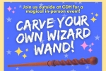 Carve your own wand at this very hands-on workshop. Please register. Wood, work gloves, and tools will be supplied. Please bring an apron. The branch will not be open to the public during the event.