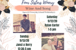 Come and enjoy the casual but lively atmosphere, award-winning wines, and beautiful vineyard views. Saturday: Dylan Carter, 1-5pm; Sunday: Janci & Berry, 12:30-5pm.